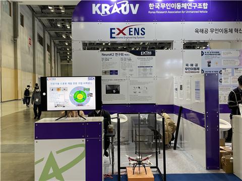한국무인이동체연구조합(KRAUV) 공동관은 한컴인스페이스, 경기경제자유구역청, 무지개연구소, 엑센스, 육해공 무인이동체혁신인재양성사업이 참여하였다.