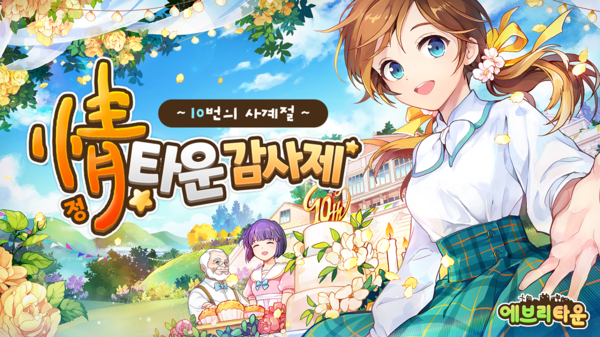 위메이드커넥트(대표 이호대)는 모바일 SNG '에브리타운' 서비스 10주년을 맞아 신규 콘텐츠 업데이트와 다양한 이벤트로 구성된 '정(情)타운 감사제' 행사를 진행한다고 2일 밝혔다.