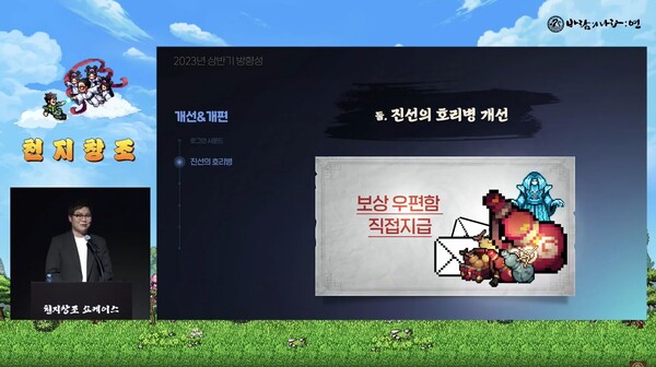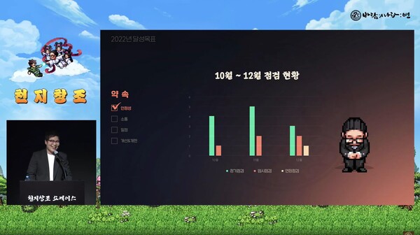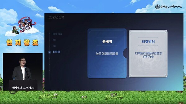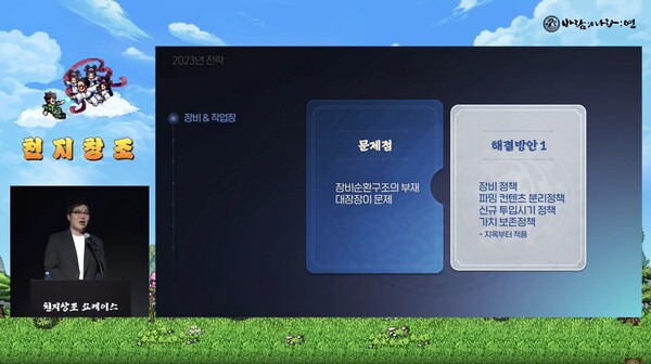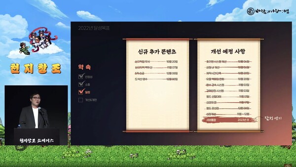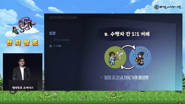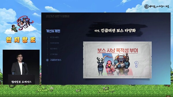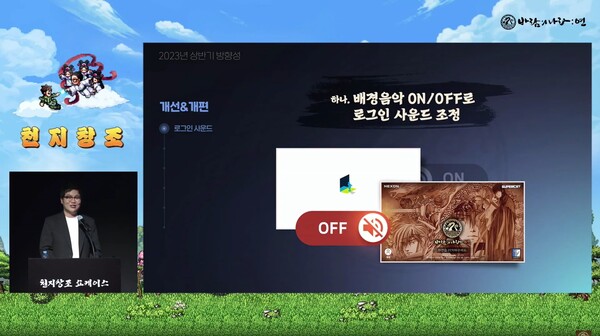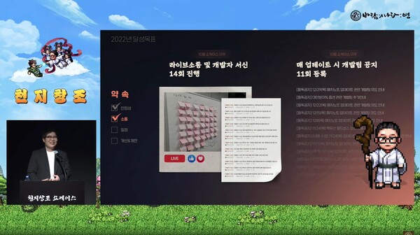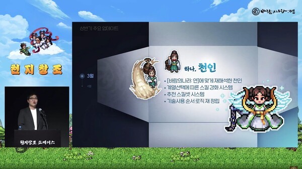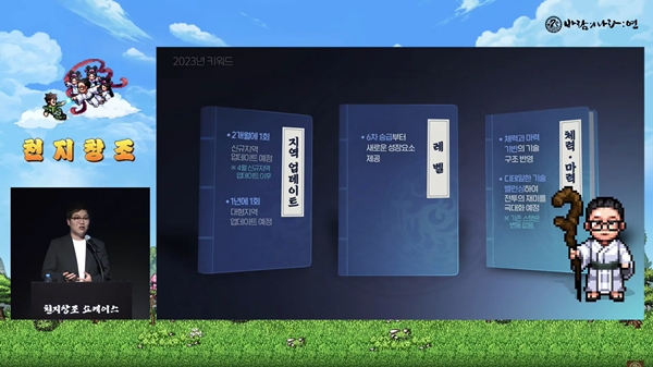 넥슨이 모바일 게임 '바람의나라: 연'의 2023년 첫 오프라인 행사 '천.지.창.조.' 쇼케이스로 유저들과 소통의 시간을 가졌다. 11일 개최된 쇼케이스에서는 김동현 슈퍼캣 바람의나라: 연 디렉터가 다양한 업데이트를 선보였던 2022년 4분기를 되돌아보고 2023년 방향성 및 전략 그리고 상반기 업데이트 내용을 발표했다.