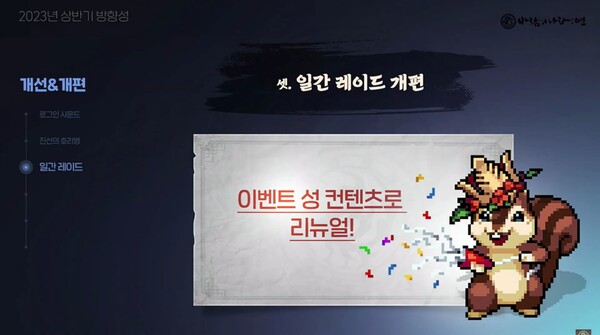3~5월 동안 기존 콘텐츠 개선과 개편에도 집중할 계획이다. 6월 이후부터는 플레이 편의성을 향상시키는 신규 콘텐츠를 추가한다.