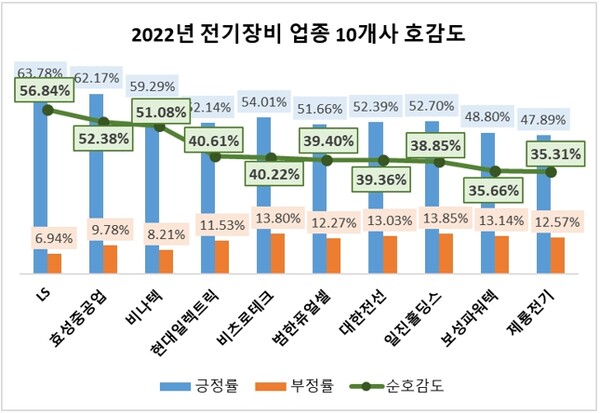 데이터앤리서치는 이들 전기장비 업종 10개사에 대한 호감도 조사도 실시했다.