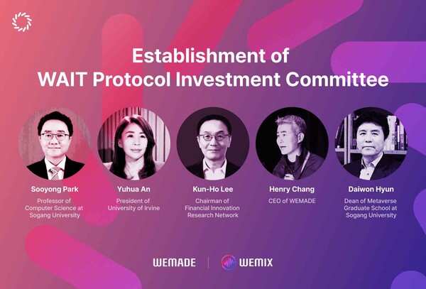 제1기 WAIT 프로토콜 투자심의위원회는 장현국 위메이드 대표를 비롯해 박수용 서강대 컴퓨터공학과 교수, 이건호 토스뱅크 사외이사 겸 금융혁신연구회 대표, 안유화 미국 어바인대학교 총장, 현대원 서강대 메타버스 대학원장까지 총 5인으로 구성됐다. 임기는 2023년 4월 1일부터 총 1년 간이며 연임도 가능하다. 초대 위원장에는 장현국 대표가 선임됐다.