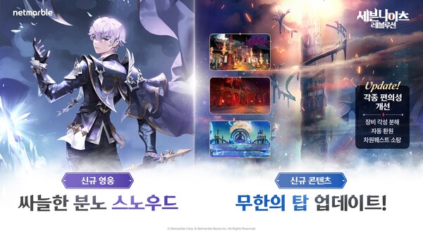 넷마블 오픈월드 MMORPG '세븐나이츠 레볼루션'이 신규 영웅 '싸늘한 분노 스노우드'와 신규 콘텐츠 '무한의 탑' 추가 업데이트를 28일 실시했다.