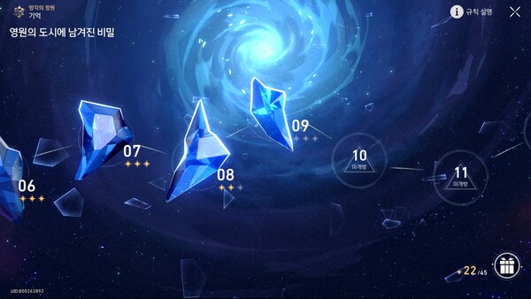 다만 현재 최우선 목표가 기간 반복 콘텐츠인 시뮬레이션 우주 제6세계, 혼돈의 기억 개방이라는 것은 부정할 수 없다. 해당 콘텐츠들을 최대한 빠르게 개방하고 공략할수록 성능 좋은 아이템과 많은 재화를 확보할 수 있다. 특히 제5세계부터 5성 장신구를 획득할 수 있다. 본격적인 파밍 시작 구간이므로 욕심을 내볼 만하다.