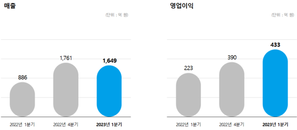 그라비티는 2023년 1분기 매출 1649억 원, 영업이익 433억 원으로 전년 동기 대비 각각 86.2%, 94.1% 증가했다고 12일 밝혔다. 전 분기와 비교하면 매출이 소폭 감소한 반면, 영업이익은 11.1% 증가하며 수익성이 더 좋아졌다.
