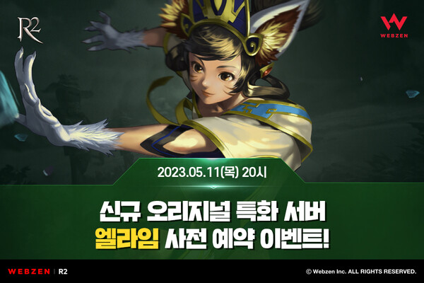 웹젠(대표 김태영)이 PC MMORPG 'R2’에서 5월 25일 20시 신규 오리지널 특화 서버 '엘라임' 오픈을 예고하고 사전 예약 이벤트를 진행한다.