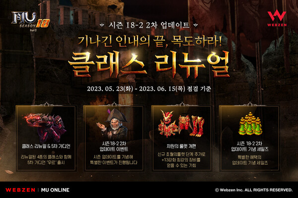웹젠(대표 김태영)은 PC MMORPG ‘뮤 온라인’에서 클래스 4종 리뉴얼 업데이트와 다양한 이벤트를 동시 진행한다.