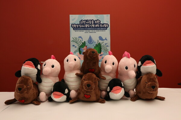 인형은 강치∙해마∙범고래 등 청정 수역에서 서식하는 귀여운 해양 동물을 소재로 한다. 바다 생태계를 위협하는 폐플라스틱을 재활용한 솜과 실 등 업사이클 소재로 만들어졌다.
