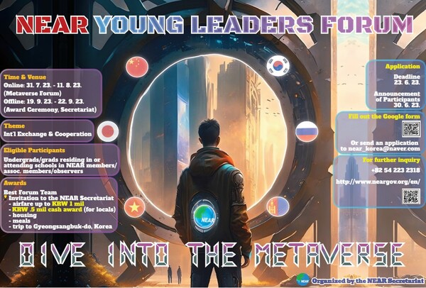 동북아지역자치단체연합(NEAR) 사무국은 7월 31일부터 8월 11일까지 '국제 교류·협력'을 대주제로 메타버스 플랫폼에서 '2023 NEAR 청년리더스포럼'을 개최한다.