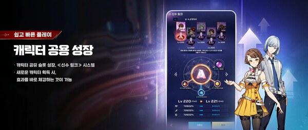 캐릭터는 명함만 있어도 사용감이 감소하지 않도록 만들었다. 등급과 레벨은 캐릭터에 구속돼 있지 않다. 신수 랭크로 슬롯 성장 시스템이다. 각각의 슬롯에 등급과 레벨이 존재한다.