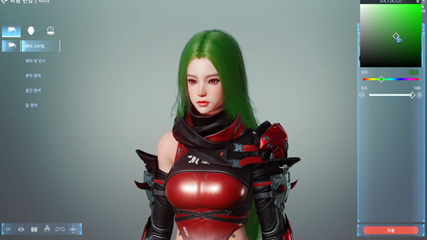 커스터마이징 기능이 수준급입니다. 기초적인 체형, 헤어스타일, 미세한 얼굴 조정까지 전부 원하는대로 됩니다. 머리카락 색깔은 뿌리부터 끝까지 상세한 설정이 가능한 정도입니다.