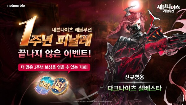 넷마블은 업데이트를 기념해 다양한 이벤트를 실시한다. 오는 15일까지 진행되는 ‘1주년 피날레! 매일 미션 이벤트’에서는 몬스터 처치, 전장 참여 등의 미션을 달성하면 ‘1주년 기념 주화’와 루비를 준다.