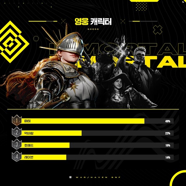 영웅 지표에서는 '마터'가 48%로 가장 많은 사랑을 받았다. 개발진은 "블레이드와 마터는 전투 적응에 도움이 되도록 설계한 캐릭터다. 다양한 상황에 대응할 수 있기에 많이 플레이해 준 걸로 보인다"고 설명했다.