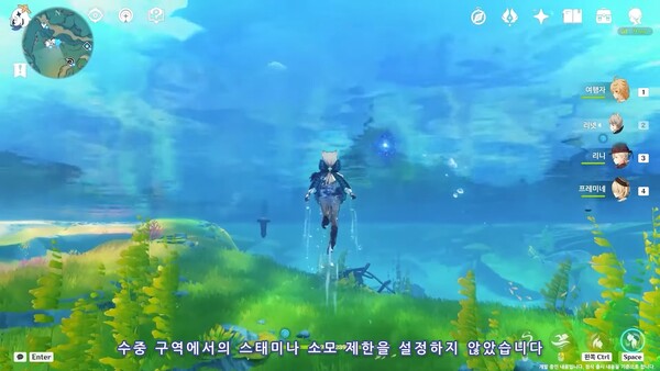 영상을 모두 감상한 류 대표는 아쿠아리아 전투 디자이너를 초청해 4.0 버전 신규 내용을 들어봤다. 아쿠아리아는 폰타인에서 가장 중요한 포인트는 '수중 탐험'이라고 강조했다.