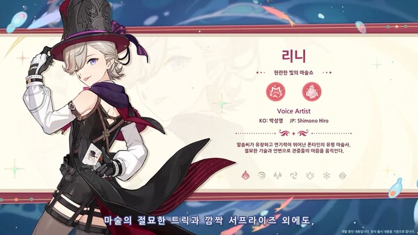 이후 루오하오는 신규 캐릭터 리니와 리넷 남매를 소개했다. 루오하오는 "리니와 리넷의 엄청난 공연이 펼쳐질 예정이니 많은 기대 바란다. 평소에는 폰타인의 드보르 호텔에 가는 것을 추천한다. 사장들이 예술가들을 자주 레스토랑에 초대해 공연을 연다. 운 좋으면 뭇 관객들의 사랑을 한 몸에 받고 있는 리니, 리넷의 마술 쇼를 볼 수 있다"고 조언했다.