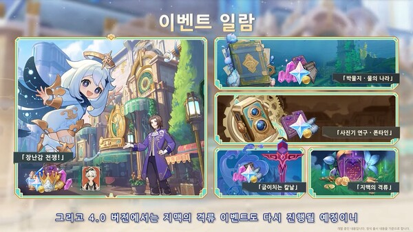 마지막으로 류웨이 대표는 4.0 버전 이벤트를 알아보기 위해 보보 레벨 디자이너를 만났다. 4.0 버전에서는 장난감 전쟁!, 박물지·물의 나라, 사진기 연구·폰타인, 굽이치는 칼날, 지맥의 격류 이벤트를 만날 수 있다.