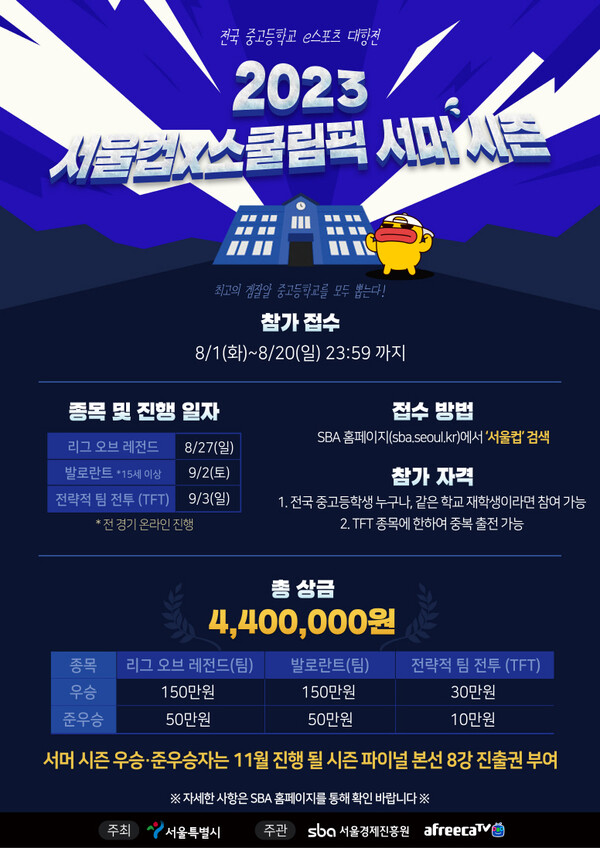 아프리카TV는 서울경제진흥원과 함께 ‘2023 서울컵x스쿨림픽’ 서머 시즌을 개최한다.