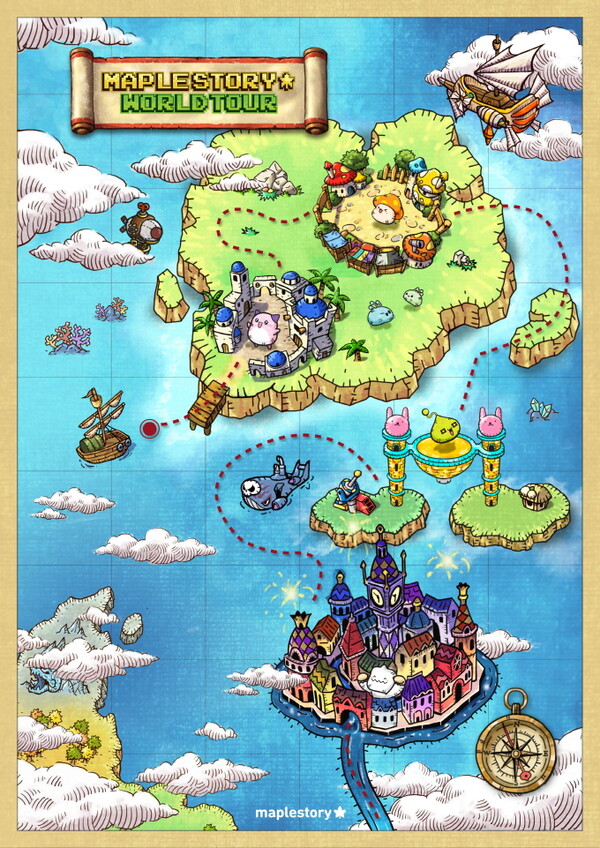 ‘메이플스토리’ 속 마을을 향해 여행을 떠나는 투어 콘셉트로 구성된 팝업스토어는 여의도에 위치한 ‘더현대 서울’ 지하 1층에 마련된다. 공항의 입국장을 연상케 하는 입장 게이트와 인기 마을 ‘리스항구’의 갑판, ‘헤네시스’ 속 장로의 집, ‘루디브리엄’의 인형 공장, ‘레헬른’의 시계탑을 생생하게 구현할 계획이다.