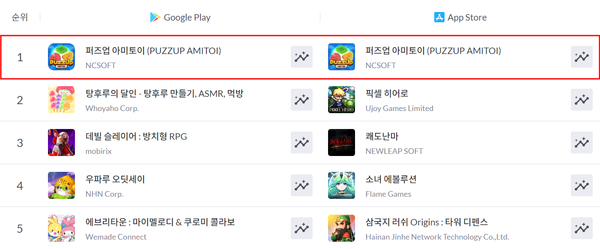 엔씨소프트 신작 '퍼즈업 아미토이'가 구글 플레이 스토어 및 애플 앱스토어 인기 1위 달성했다. 엔씨는 양대 마켓 인기 1위 기념으로 스페셜 이벤트를 준비했다.