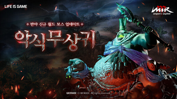 위메이드(대표 장현국)는 MMORPG 미르M: 뱅가드 앤 배가본드에 인터 서버 지역 ‘반야도’의 신규 월드 보스 ‘악식무상귀’를 12일 업데이트했다.