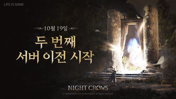 위메이드(대표 장현국)는 MMORPG 나이트 크로우에서 19일 두 번째 서버 이전을 실시한다.