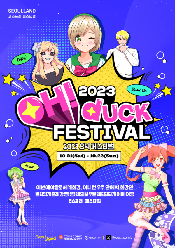 2023 오덕 페스티벌은 10월 21일과 22일 양일간 오전 11시부터 오후 8시까지 열리는 코스프레 페스티벌 행사다. 서울랜드 내 여러 장소에서 다채로운 프로그램이 펼쳐진다.