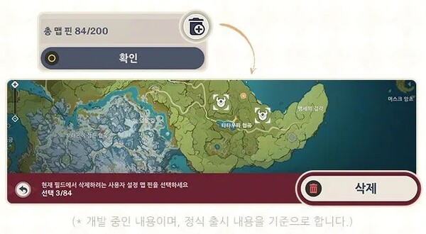이후 개발진은 "신규 지역이 개방되며 맵 핀 수요도가 늘어났다. 4.2 버전에서는 최대 맵 핀 수를 200개로 확장할 계획이다"고 전했다. 맵 핀은 여러 목적을 위해 특정 위치를 표시하는 기능이다. 신의 눈동자, 재료 획득처를 표기할 때 주로 사용한다.