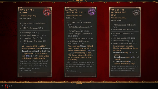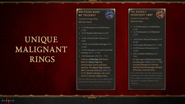 디아블로4가 시즌2 신규 고유 유니크 아이템 '악의 반지' 상세 능력치를 공개했다.