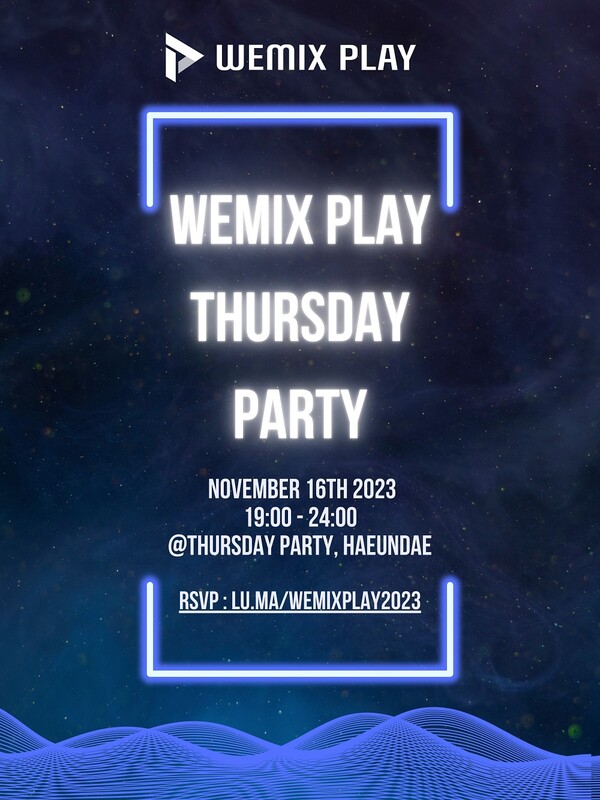 파티는 11월 16일 오후 7시 해운대 인근에서 진행된다. 현장에서는 게임 개발사들에게 위믹스 온보딩 관련 설명과 지원 등에 대해 의견도 나눌 예정이다.