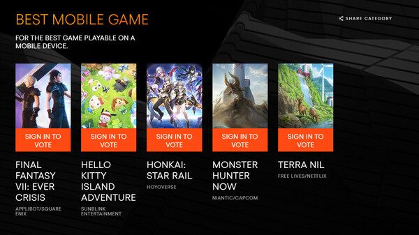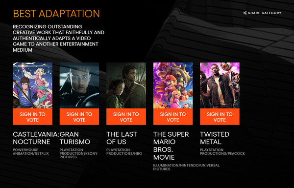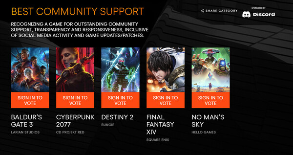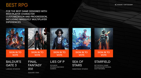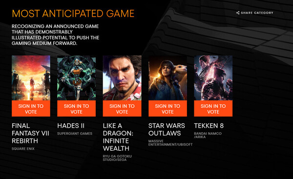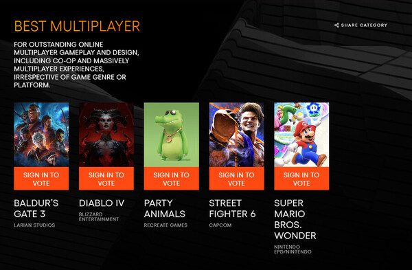 2023 골든 조이스틱 어워드에서 올해의 게임을 수상한 라리안 스튜디오 발더스 게이트3가 또 다시 최고의 게임으로 등극할 지도 관전 포인트다. TGA 2023 시상식은 12월 8일 미국 로스앤젤레스 피코크 시어터에서 개최된다.