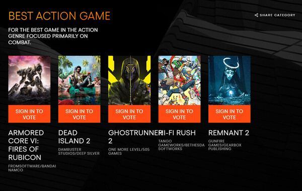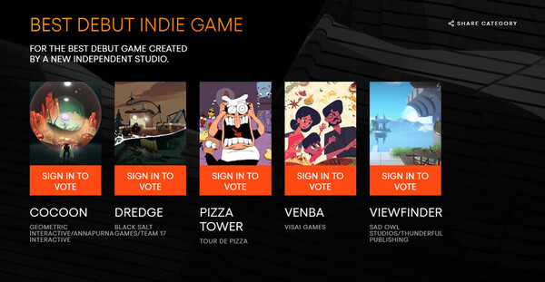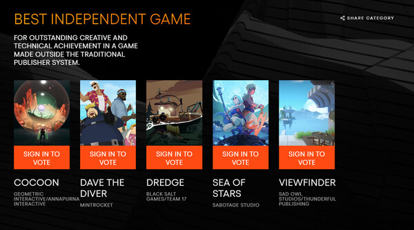 TGA은 한국 시간 기준 14일 오전 홈페이지에 총 31개 부문별 수상 후보작 명단을 공개하고 일반 이용자 투표를 시작했다. 후보작 리스트에는 네오위즈 'P의 거짓'이 '최고의 예술 감독', '최고의 RPG' 등 2개 부문 후보로 선정됐다. 넥슨 민트로켓 '데이브 더 다이버' 역시 '최고의 인디 게임' 부문에 이름을 올렸다.