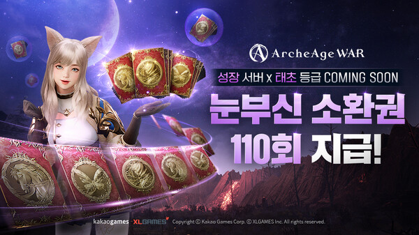 사전예약은 ‘아키에이지 워’ 공식 홈페이지에서 받는다. 참여자에게는 ‘눈부신 11회 소환권 선택 상자’ 10개가 지급된다. 15일부터 다음달 5일까지 게임에 접속한 모든 이용자에게 매일 ‘눈부신 11회 소환권 선택 상자’ 1개씩 준다.
