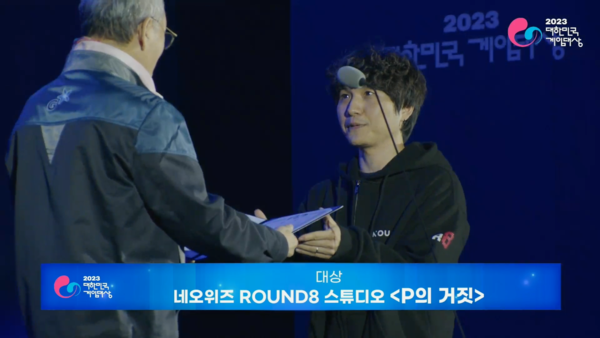 2023년을 빛낸 영예의 대한민국 게임대상은 네오위즈 'P의 거짓'이 차지했다. P의 거짓은 대상을 비롯한 기술ㆍ창작상, 우수개발자상, 인기게임상 등 받으며 지난 2019년 로스아크 이후 약 4년만에 6관왕의 영예를 안았다.