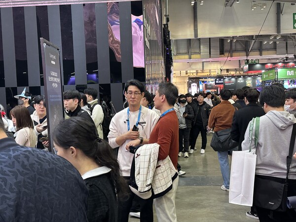 부스에는 지원길 스마일게이트RPG 대표도 참여했다. 그는 현장을 철저하게 살펴보고 스탭들도 어떻게 관람객들을 인솔하는지 확인했다. 로스트아크 팬들을 향한 그의 애정이 물씬 느껴졌다.
