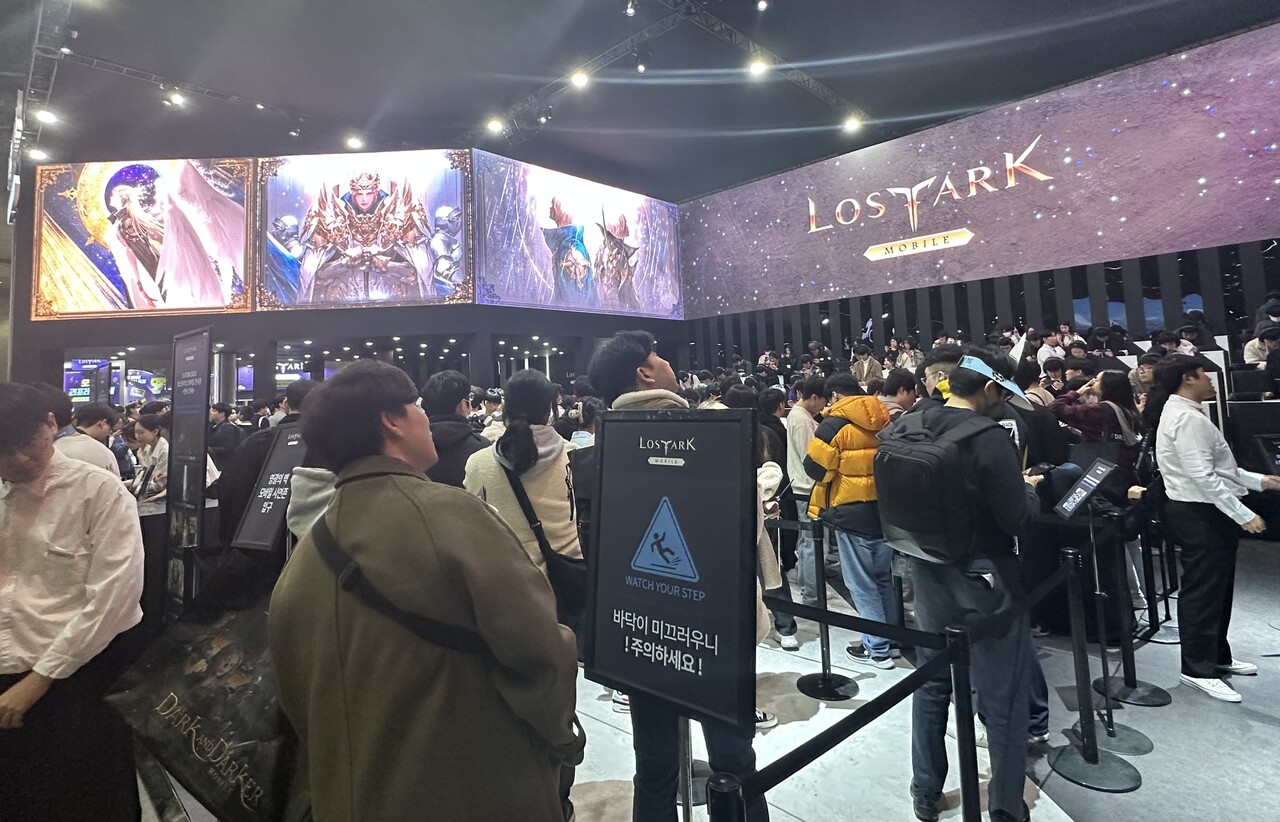 출품작 시연 대기열로 지스타 2023 주인공을 선정한다면 단연 ‘스마일게이트RPG’다. 지스타 2023에서 로스트아크는 인기를 다시금 입증했다. 로스트아크 모바일을 즐기기 위해선 2시간 이상 시연 대기열이라는 0관문을 통과해야 한다.