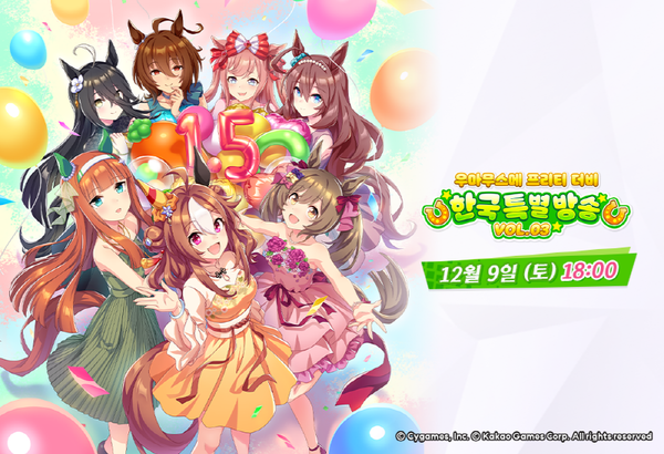 한편, 12월 9일 오후 6시부터 ‘우마무스메 프리티 더비’ 공식 유튜브를 통해 서비스 1.5주년 기념 ‘한국 특별 방송 Vol.03’를 생방송으로 진행한다. 방송에서는 유명 인플루언서들이 직접 출연하여 이용자들과 소통하며 향후 시나리오 및 우마무스메 업데이트 안내, 이용자 퀴즈 타임, 스페셜 매치 등 다양한 프로그램을 진행할 예정이다.