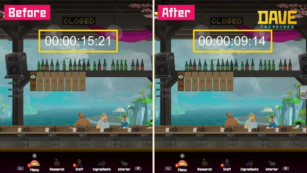 다만 로딩 시간이 길다는 피드백이 많았다. 개발진은 이를 해소하기 위해 게임을 실행할 때 로딩 속도와 초밥 집으로 이동하는 부분의 로딩 속도를 개선했다. 비교 영상을 확인하면 약 6초 정도 빨리진 모습을 볼 수 있었다.