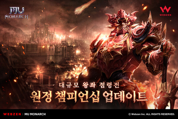 웹젠(대표 김태영)이 모바일MMORPG ‘뮤 모나크’의 3차 업데이트를 진행한다. 대규모 PvP 콘텐츠 ‘원정 챔피언십’과 캐릭터 육성 시스템 ‘원소’, 신규 보스와 타임어택 콘텐츠기 주 내용이다.