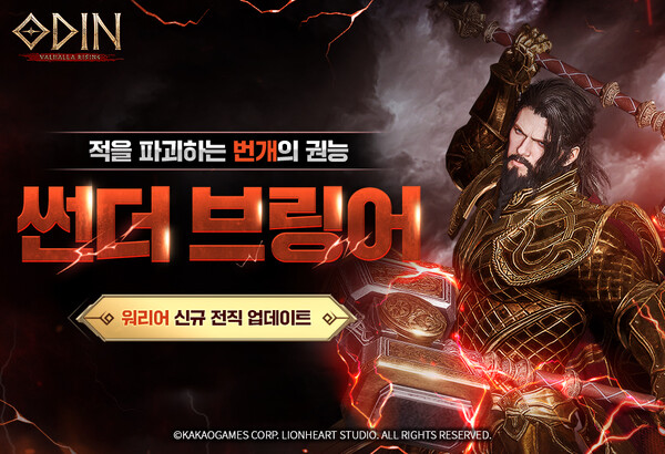 카카오게임즈(대표 조계현)는 20일 ‘오딘: 발할라 라이징’에 신규 전직 클래스 ‘썬더 브링어’를 업데이트했다.