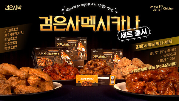 검은사멕시카나 세트는 치킨(후라이드, 양념, 간장, 땡초, 고매 치킨 중 한 가지 선택)과 소떡소떡, 콜라로 구성됐다. 오프라인 매장, 배달 플랫폼, 멕시카나 공식 홈페이지 및 앱에서 구매할 수 있다.