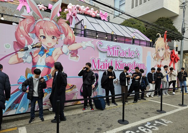 카페는 1층의 컬래버보레이션 구역과 2층의 메이드 구역으로 구성됐다. 1층은 팝업 카페 존으로 미라클 메이드 킹덤 기반으로 꾸며진 포토존과 팝업 스토어, 특별 한정 메뉴들을 이용할 수 있다. 1층은 현장 접수를 하면 별도 예약 없이도 이용 가능하다.