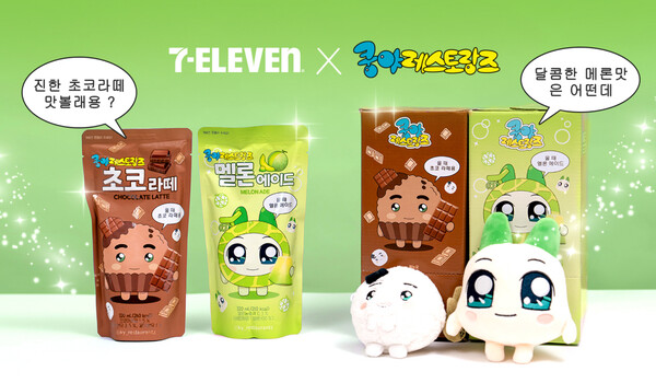 컬래버 제품은 ‘쿵야 레스토랑즈 초코라떼’, ‘쿵야 레스토랑즈 멜론에이드’ 등 총 2종이다. 초콜렛 콘셉트의 주먹밥쿵야와 멜론 콘셉트의 양파쿵야 한정 아트웍을 활용해 디자인된 것이 특징이다. 세븐일레븐 일부 점포에서 판매하며 ‘세븐일레븐’ 앱에서 상품 입점 매장을 확인할 수 있다.