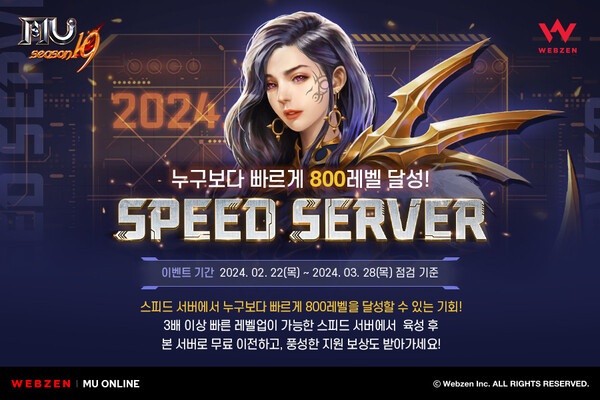 웹젠(대표 김태영)은 PC MMORPG ‘뮤 온라인’에서 올해 첫 ‘스피드 서버’ 오픈과 함께 다양한 이벤트를 진행한다.