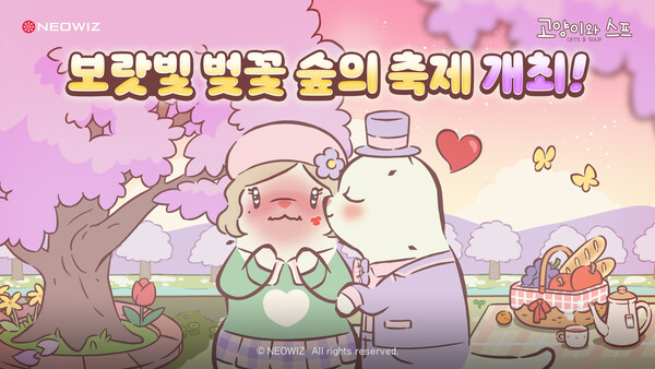 네오위즈(대표 김승철, 배태근)가 모바일 힐링 방치형 게임 ‘고양이와 스프’에서 ‘보랏빛 벚꽃 숲의 축제’ 이벤트를 진행한다.