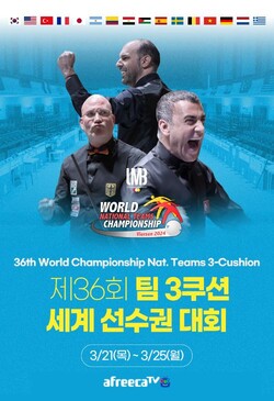 아프리카TV는 독일 비어슨에서 열리는 ‘팀 3쿠션 세계 선수권’ 대회를 생중계한다. 16개국 총 32명의 선수가 출전한 대회는 21일 개막전을 시작으로 25일까지 진행된다.