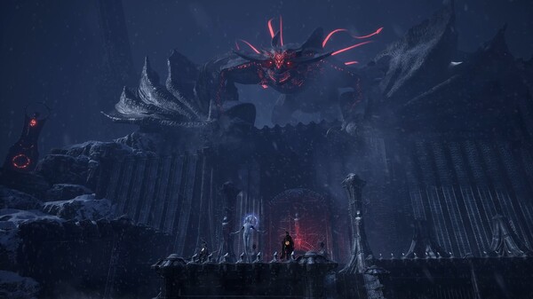 주인공은 말을 타고 어디론가 향한다.무언가에 꿰뚫린 듯한 모습의 외계 생명체 석상 위로 드래곤이 지나간다. 그 뒤에는 거대한 유적과 같은 건축물이 시선을 사로잡았다. 주인공 일행은 건축물에 진입하기 전 근처에서 야영지를 만들어 휴식을 취한다.