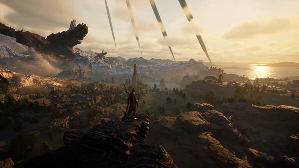 카메라는 광활한 오픈월드를 바라보는 창기사의 모습으로 전환된다. 어두웠던 분위기가 다소 평화롭고 밝아졌다. 절벽 반대편에는 설원 지역이 펼쳐져 있고 정체불명 구조물도 보인다. 바로 앞에는 눈이 내리지 않은 평원으로 마을 건물들이 보인다. 좌측 강가 주변에도 마을이 있는 것을 확인할 수 있다.