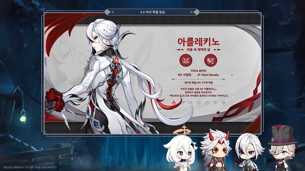방송에는 페이몬 역의 김가령 성우, 아라타키 이토 역의 송준석 성우와 함께 벽난로의 집 관련 캐릭터인 아를레키노 역의 이명희 성우, 리니 역의 리니 성우가 마이크를 잡았다.