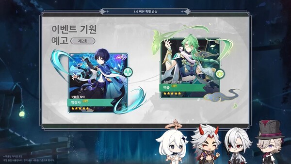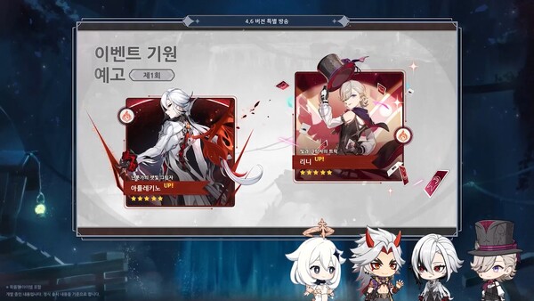 5성 캐릭터: 아를레키노(신규), 리니(복각)
