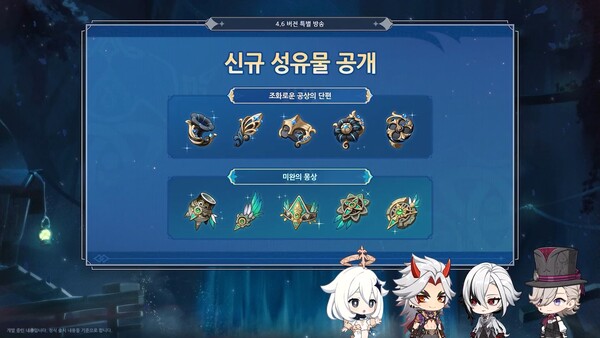신규 성유물 세트 '조화로운 공상의 단편'과 '미완의 몽상'이 추가된다.
